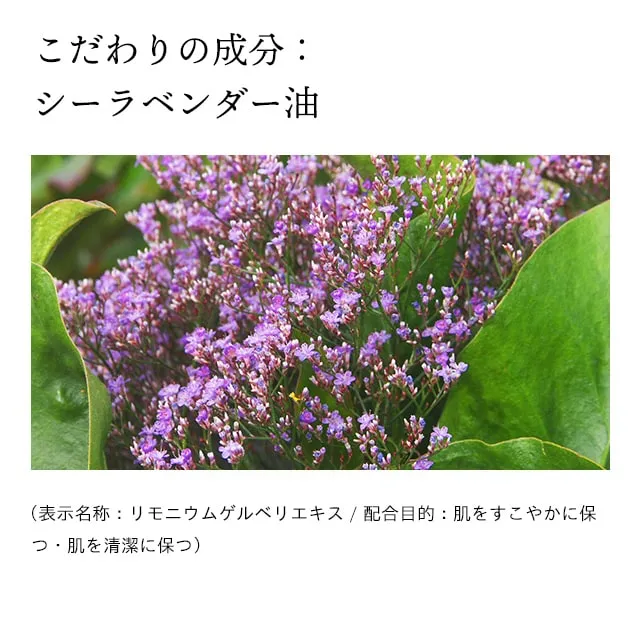 (表示名称:リモニウムゲルベリエキス / 配合目的:肌をすこやかに保つ・肌を清潔に保つ)